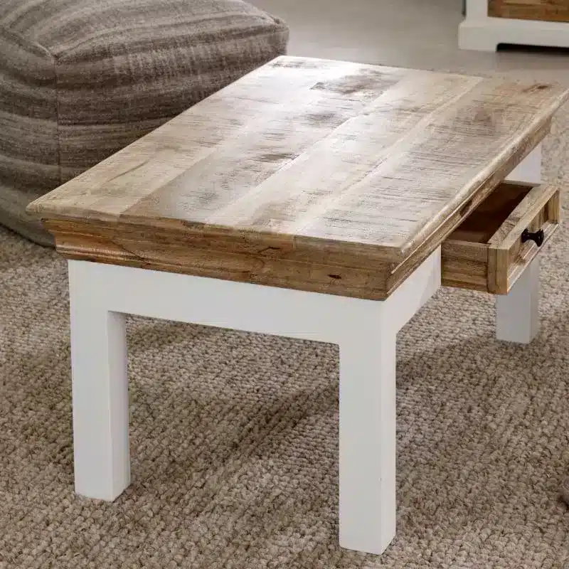 The Alfonse Solid Mango Hardwood  Centre Drawer Coffee Table is crafted with meticulous attention to detail, seamlessly blending functionality with breathtaking beauty.