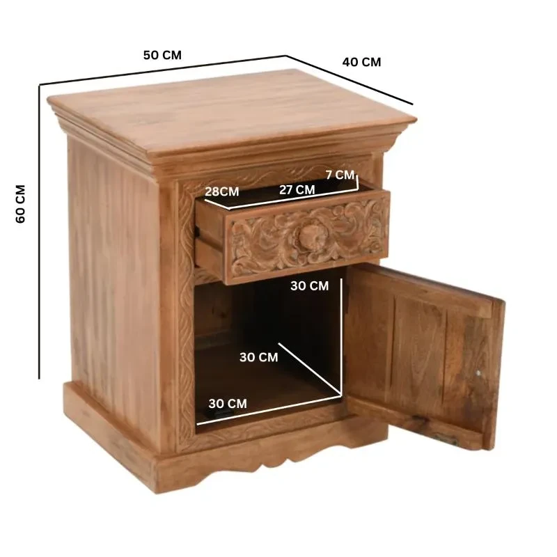 Handcrafted from the finest Mango hardwood, each piece is a testament to the skill of our master artisans. Intricate carved designs adorn the surface, adding a touch of timeless elegance to any space. From flowing motifs to geometric patterns, every carving tells a story of craftsmanship and artistry.