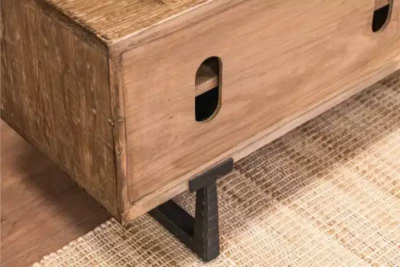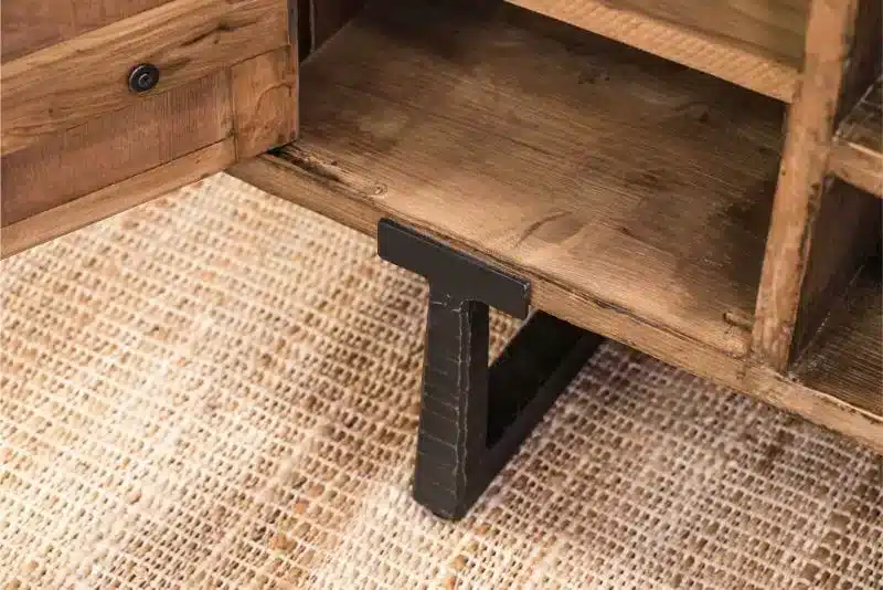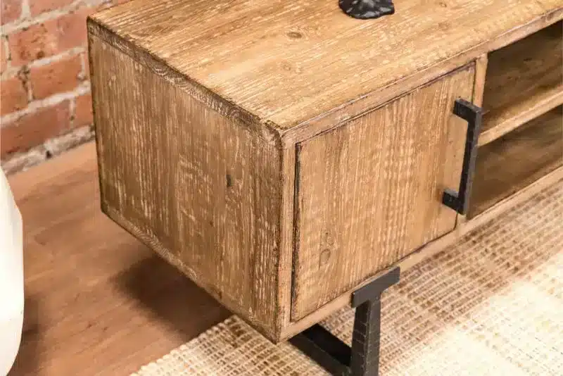 Evocation 2 Door Media Cabinet, a masterpiece that seamlessly blends modern aesthetics with traditional opulence, bringing a truly contemporary aura to any space. Crafted and offering a new dimension to furniture making with reclaimed pine and iron, this industrial style table exudes durability and strength, ensuring it will stand the test of time while becoming a cherished heirloom for generations to come. The spacious solid & chunky reclaimed Pine top and smooth eco-friendly finish adds an understated elegance, allowing it to seamlessly complement any interior décor style, from minimalist to classic.