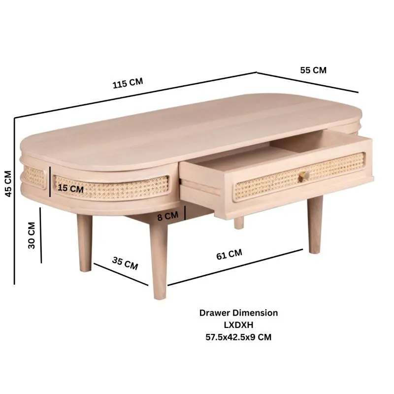 The Hugo 4-Door Solid Mango Cane 1 Drawer Coffee Table, a harmonious blend of natural materials, it brings a touch of coastal-inspired charm to your dining room. Constructed from woven cane and solid mango wood, this sideboard exudes a natural warmth and durability that enriches any room’s ambiance. Its spacious surface offers ample surface area for displaying treasured items, while spacious central drawer with smooth-gliding mechanisms reveal ample storage for everyday essentials.