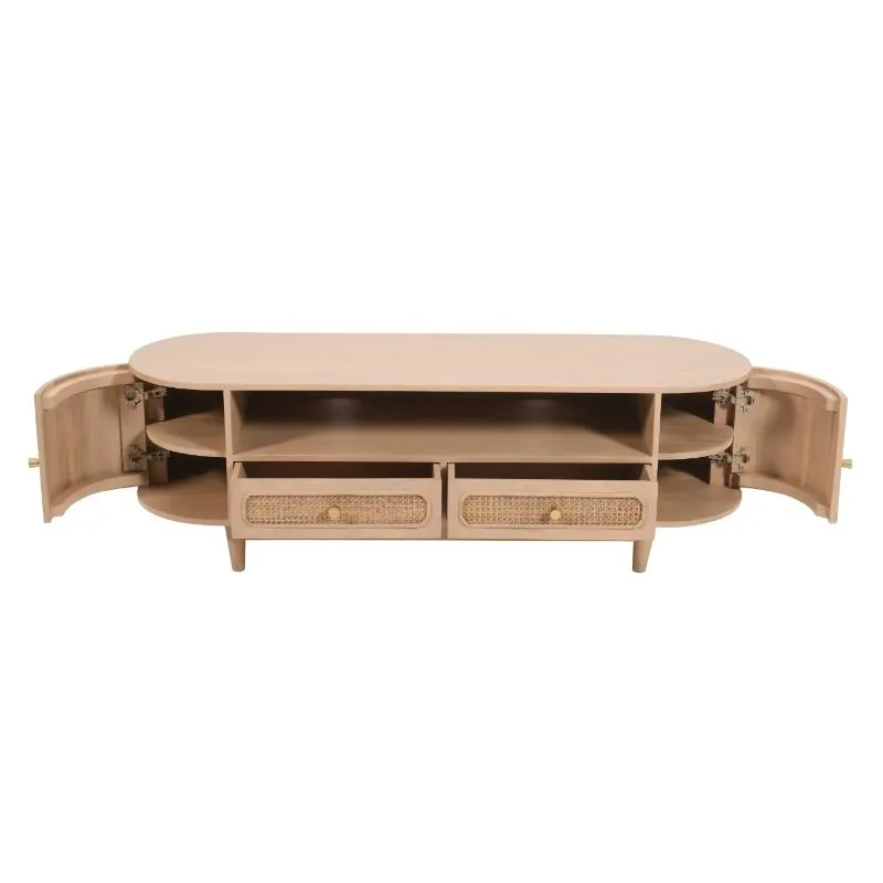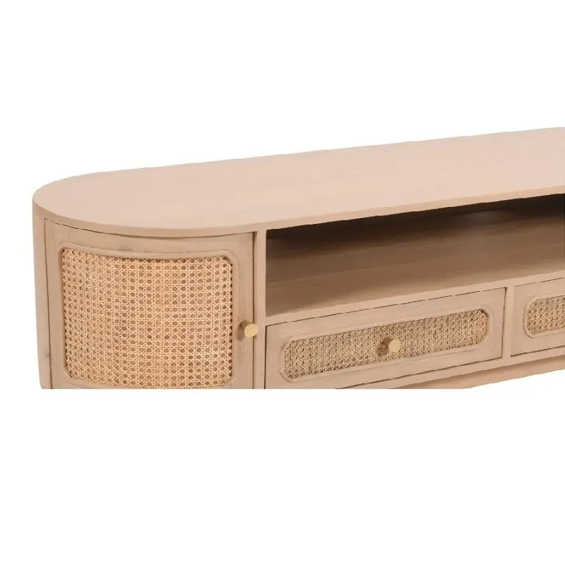 The Hugo 4-Door Solid Mango Cane Cabinet, a harmonious blend of natural materials, it brings a touch of coastal-inspired charm to your dining room. Constructed from woven cane and solid mango wood, this sideboard exudes a natural warmth and durability that enriches any room’s ambiance. Its spacious surface offers ample surface area for displaying treasured items, while four spacious doors with smooth-gliding mechanisms reveal ample storage for everyday essentials.