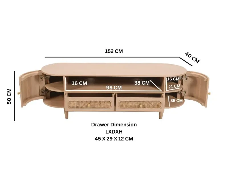The dovetailed construction ensures stability and durability, reflecting the meticulous attention to detail that went into creating this beautiful piece, its smooth, expansive surface provides ample space for displaying a TV or other electronic items, decorative items, family photos, or your favorite plants, enhancing the overall aesthetic of your home.