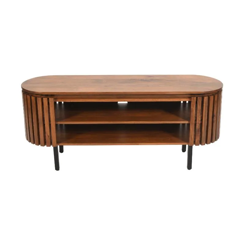 The Slattio Solid Mango Hardwood Twin Shelf Media Cabinet is crafted with meticulous attention to detail, seamlessly blending functionality with breathtaking beauty.