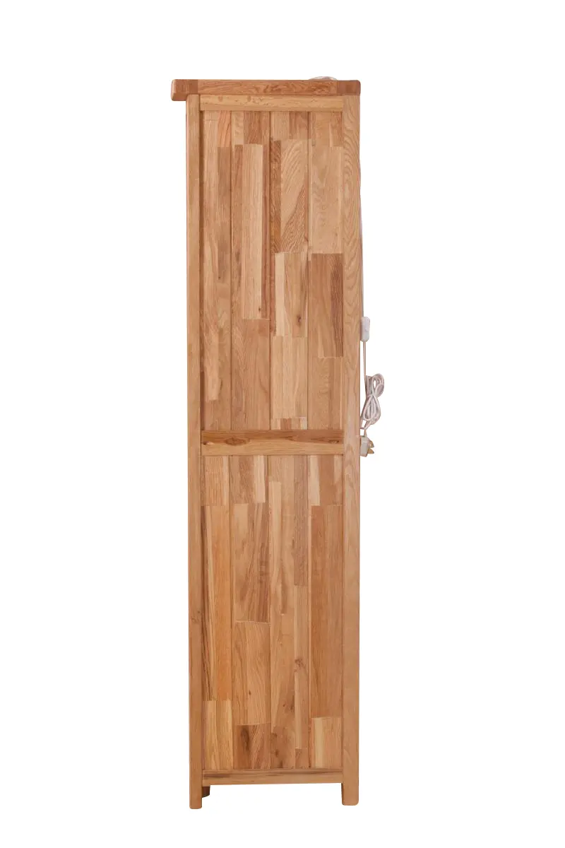 The exquisite Sofia Collection Handcrafted Solid Oak Corner Glass Display Cabinet is crafted from the finest American solid white oak, with multiple shelves and two doors for versatile organization. An unparalleled work of art, it is meticulously constructed with precision and care, exemplifying the enduring strength and beauty of dovetail joinery to ensure your cabinet remains both sturdy and elegant for years to come. The hand-applied brushed oil finish infuses this cabinet with an inviting warmth that beckons you to gather around. This thoughtful finish subtly accentuates the natural grain of the oak, imbuing every piece with a unique and individual character that adds a touch of rustic charm to your home.
