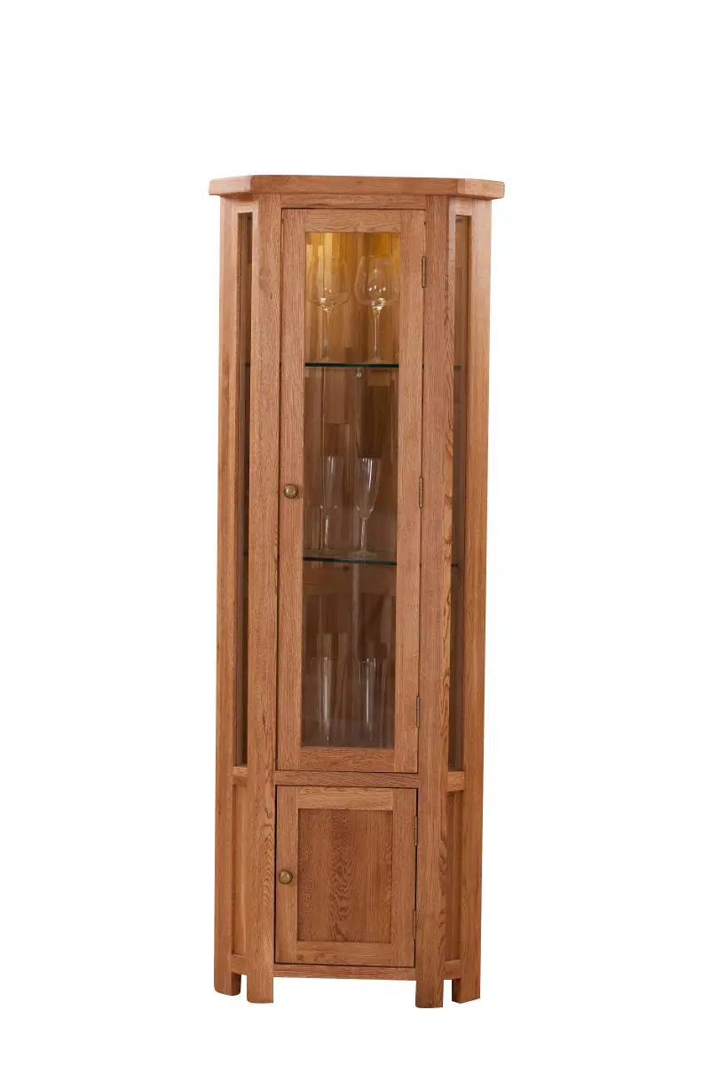 The Sofia Collection Handcrafted Solid Oak Corner Glass Display Cabinet is more than just a piece of furniture; it’s an embodiment of enduring quality and style.