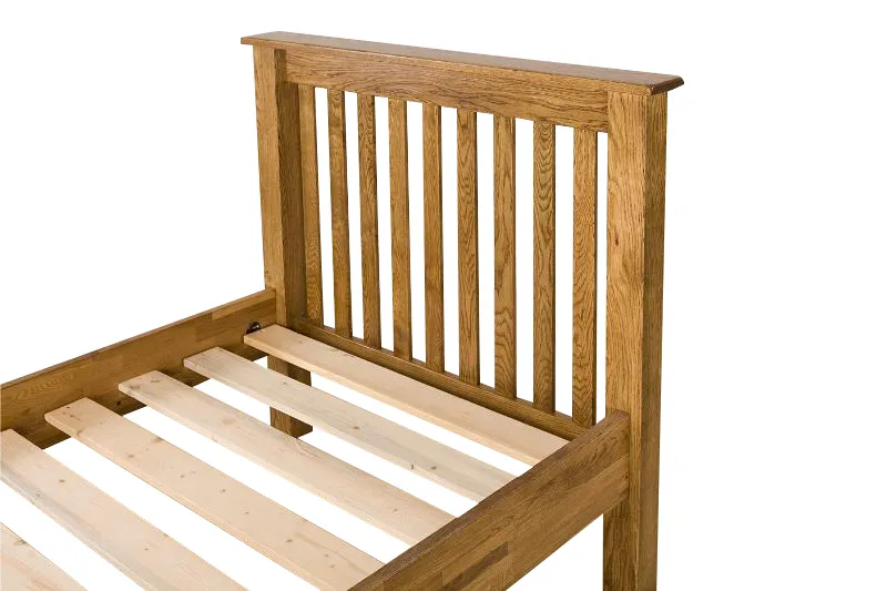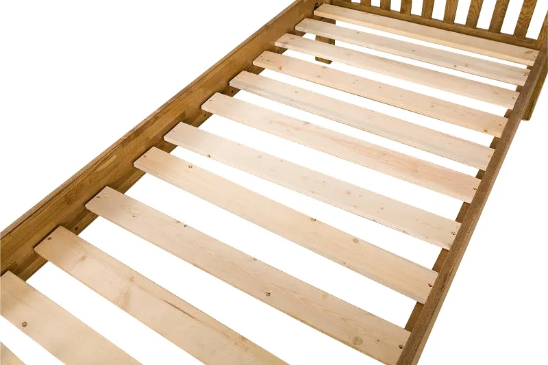 Handmade using traditional woodworking techniques, each piece is a testament to the artistry of skilled craftsmen. The result is a bed that exudes quality and craftsmanship in every aspect of its design whilst also offering practical sleeping solutions. Its sturdy frame and support slats, dovetailed construction and classic headboard and foot end design provide a steady foundation and add a touch of sophistication while ensuring ease of use.