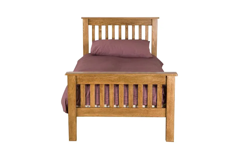 Introducing the Solidus 3′ High Foot End Bed where timeless style meets artisan craftsmanship. This exquisite cabinet seamlessly blends classic aesthetics with modern functionality, making it the perfect centerpiece for your living space. Crafted from premium American White Oak, the bedstead embodies strength and durability, ensuring it will stand the test of time. Its rich and inviting rustic finish is achieved through a meticulous hand-finished satin lacquer, giving it a warm, inviting glow that complements any decor.
